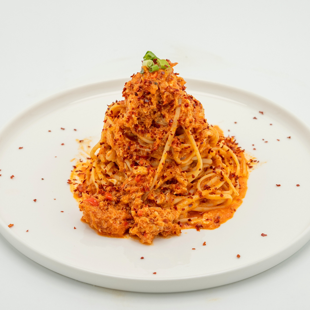 Indulge in a burst of flavor with our Linguine, combining succulent crabmeat, a touch of chili flakes, spicy chili padi, and a creamy egg, all enveloped in our homemade tomato sauce. A delicious twist on a classic favorite.