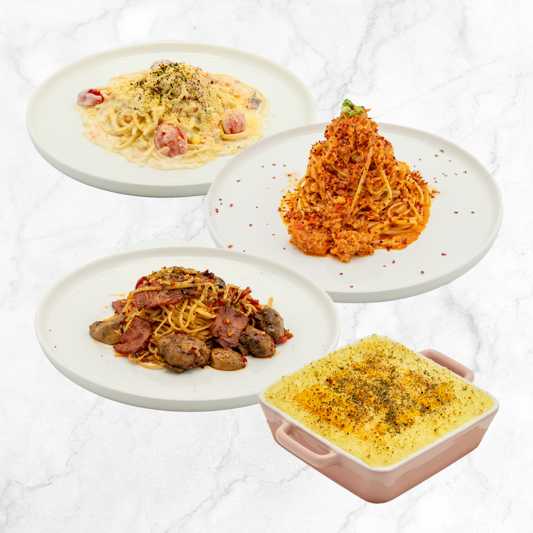 | 3rd Mains | Aglio Olio, Mushroom Broccoli Aglio Olio, Mushroom Broccoli Tomato Linguine, Beef Bolognese, Chicken Bolognese, Truffle Mushroom w Bacon & Mushroom, Creamy Salmon Linguine, Chicken Pie, Beef Pie |